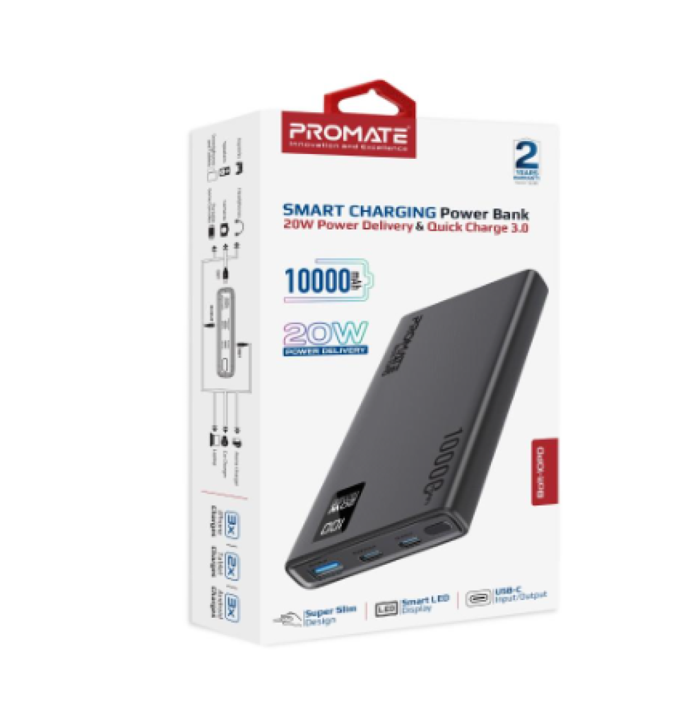 مميزات شاحن متنقل باور بانك بروميت 10000 مللي أمبير Promate Bolt-10Pro Compact Smart Charging Power Bank: