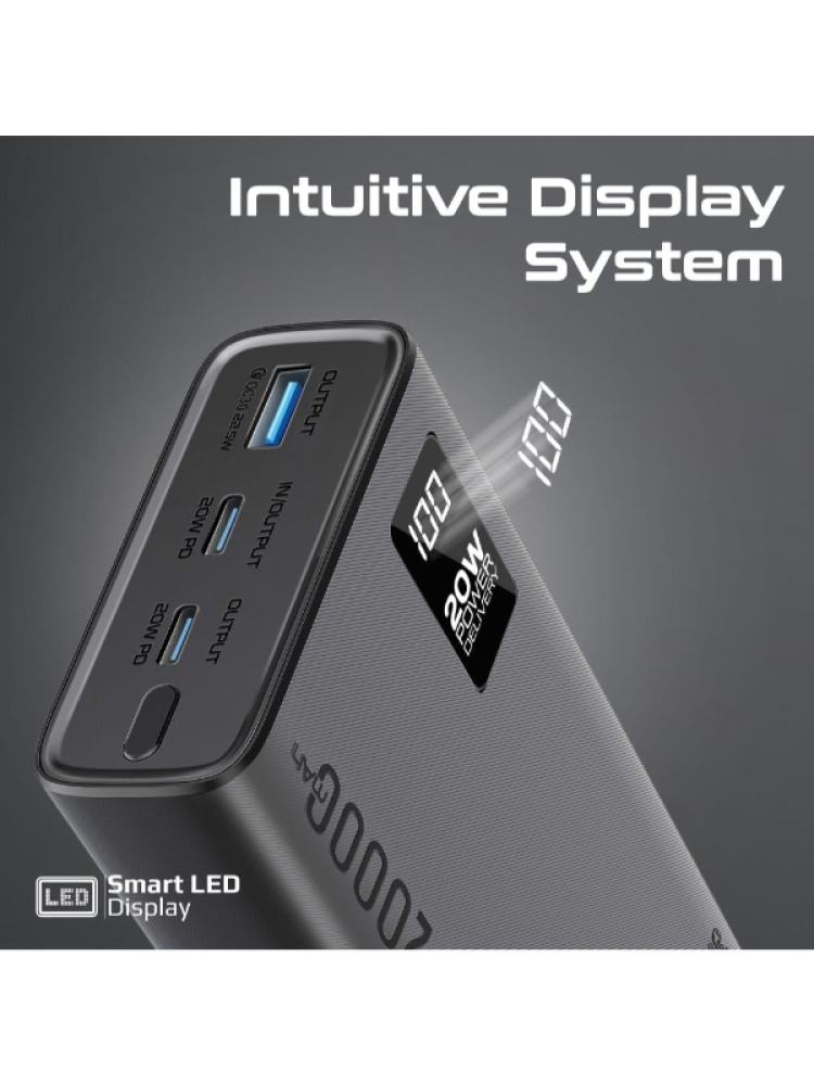 - يأتي Bolt-20PD مع شاشة LCD والتي تمكنك من مراقبة -وفي الوقت الفعلي- لحالة البطارية، مع عرض معلومات دقيقة حول الطاقة المتبقية وحالة الشحن لبنك الطاقة.