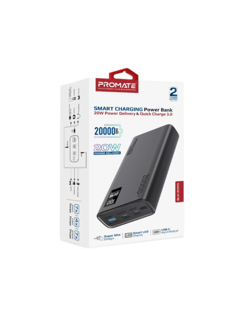 - يمتاز Bolt-20PD بسعة بطارية تبلغ 20000 مللي أمبير توفر طاقة كاملة لأجهزتك المختلفة وتشحنها بسرعة أكبر من بنك الطاقة العادي.