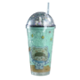 بوتل فاشون , زجاجة مياه لرائد الفضاء بطبقتين مع كوب ثلج للشرب مع ماصة , اخضر