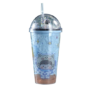 بوتل فاشون , زجاجة مياه لرائد الفضاء بطبقتين مع كوب ثلج للشرب مع ماصة , ازرق