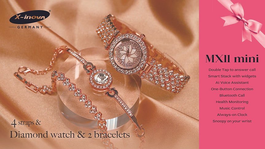 ، مصممةٌ بعنايةٍ فائقةٍ للمرأة العصرية. انطلقي في عالمٍ من الأناقة مع ثلاث إكسسواراتٍ متكاملةٍ مرصعةٍ بالألماس: ساعةٌ وسواران، كلٌّ منهما يجسّد جوهر الأناقة العصرية.