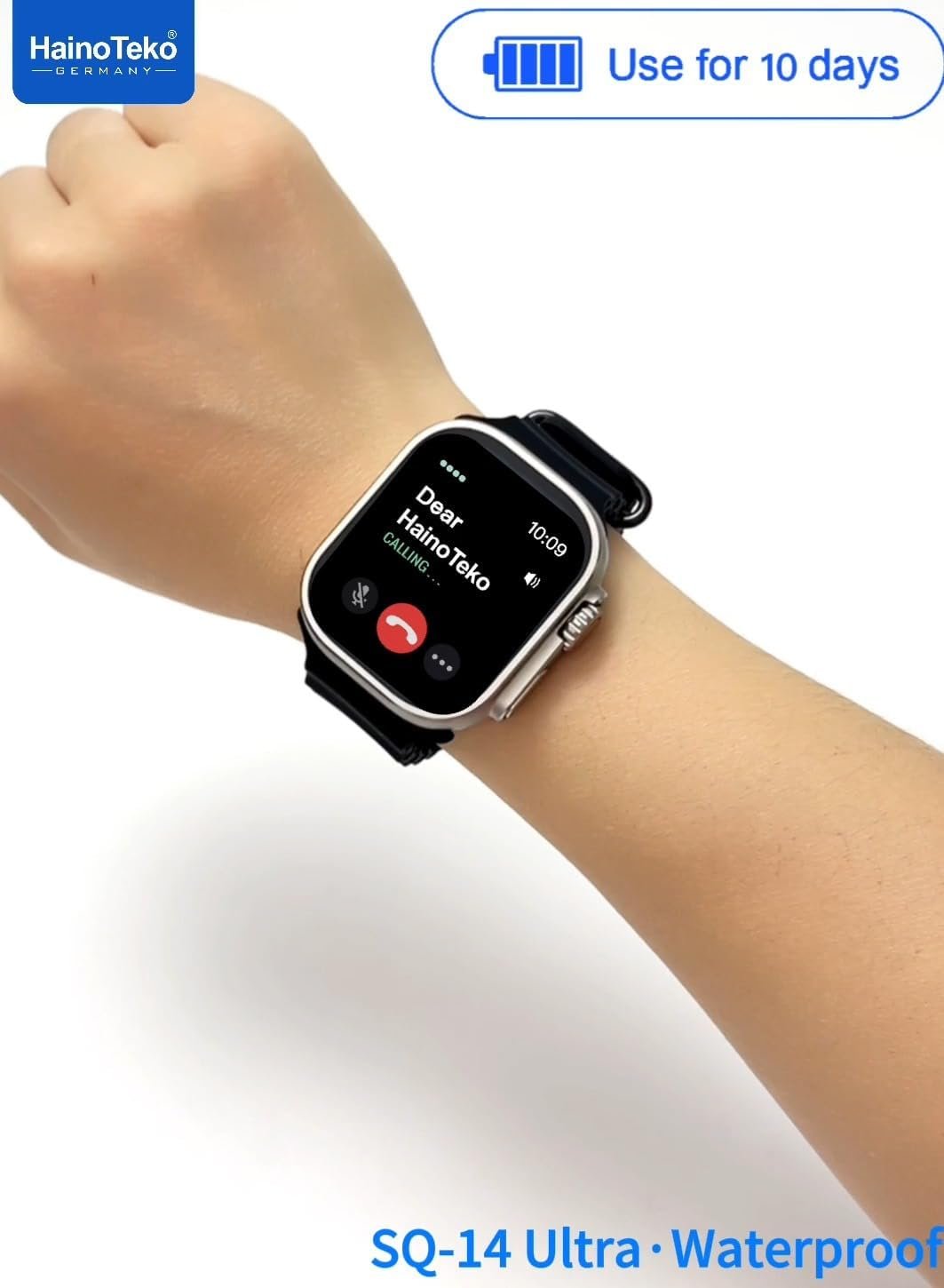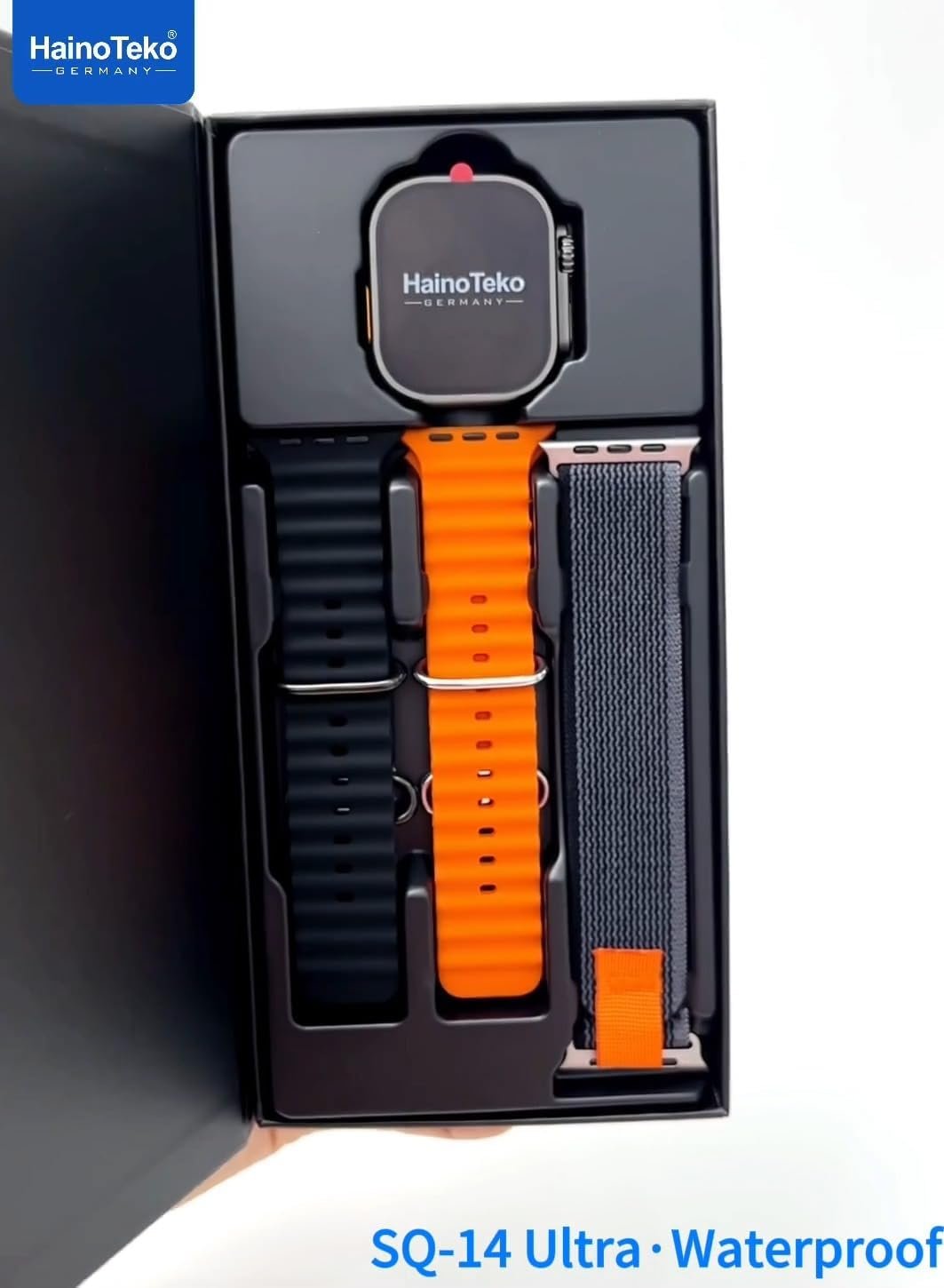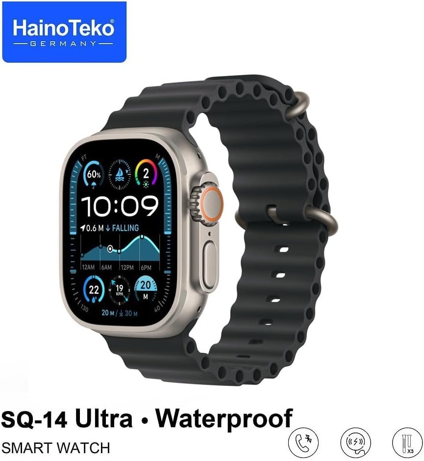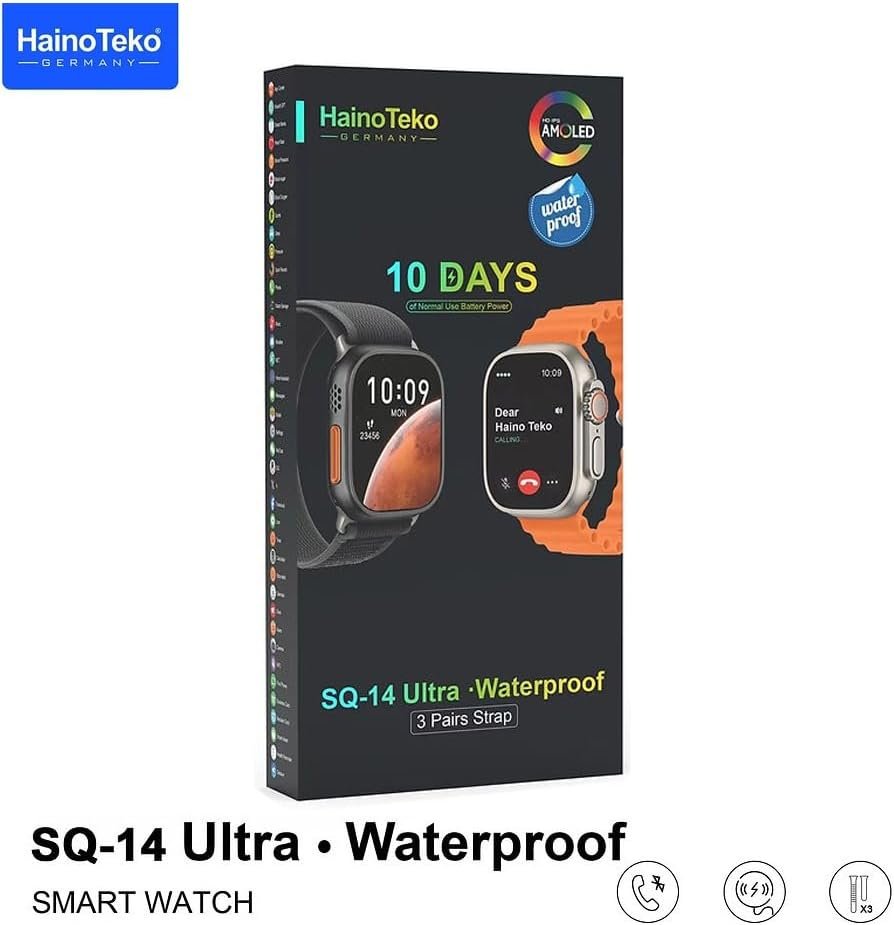 ساعة ذكية SQ-14 الترا وشاشة عرض AMOLED وشحن لاسلكي مع 3 أزواج من الأشرطة مقاومة للماء متعددة الألوان
