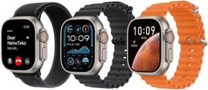 • ساعة ذكية بشاشة AMOLED وشحن لاسلكي 3 أزواج من الأشرطة ومقاومة للماء.