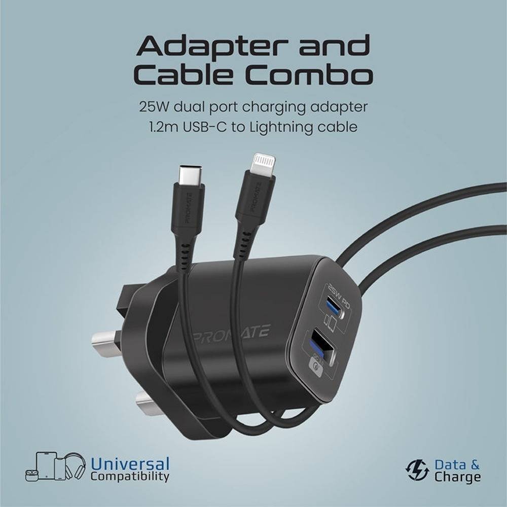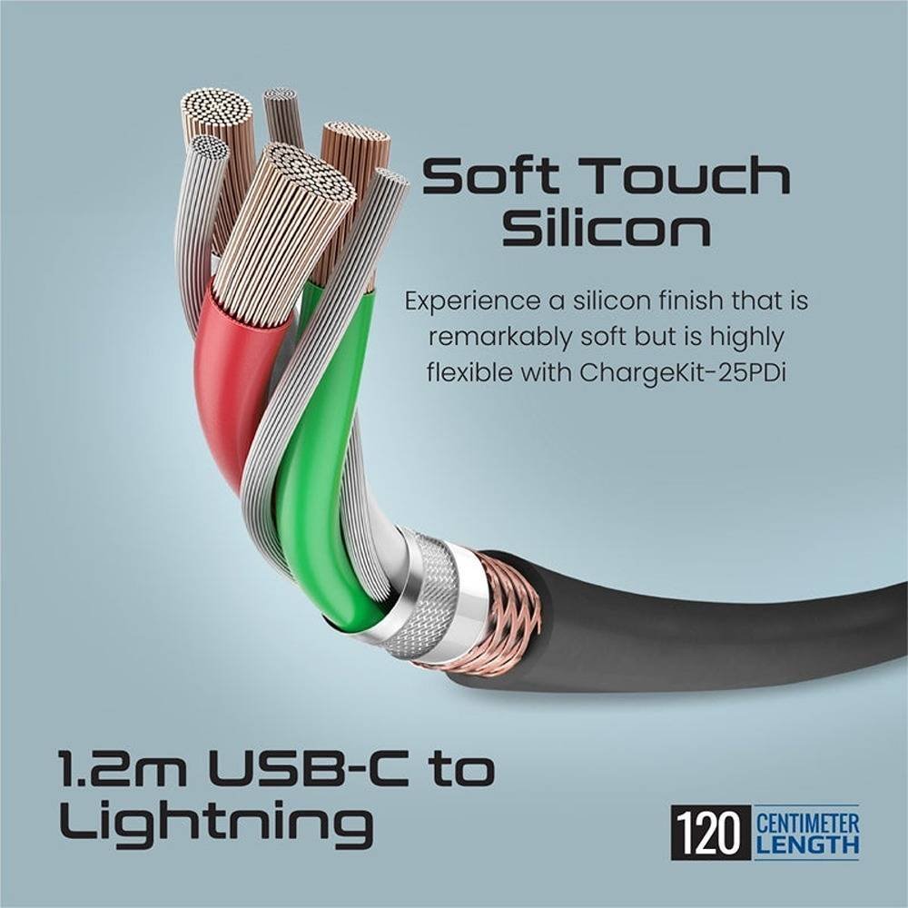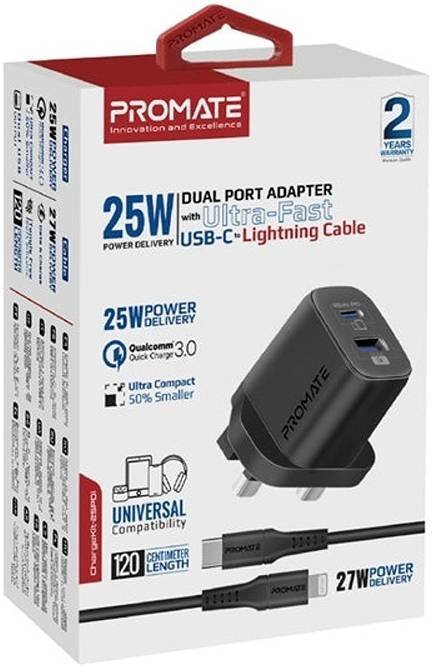 محول ثنائي المنفذ لتوصيل الطاقة بقوة 25 واط من بروميت ، كابل USB-C فائق السرعة إلى Lightning ، USB-C (PD) ، طول كابل 1.2 متر