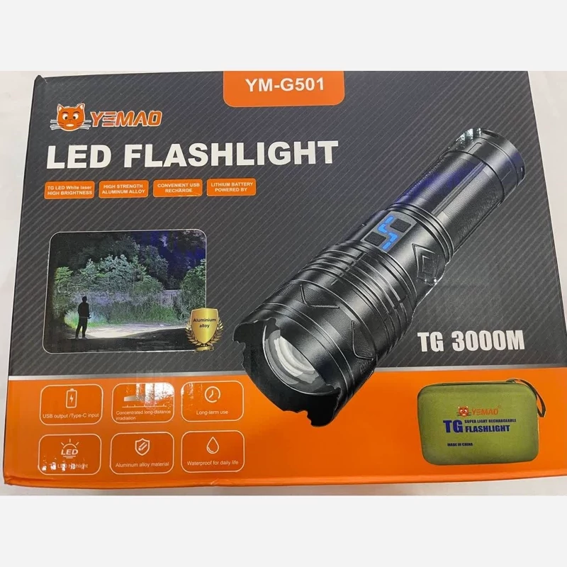 مصباح يدوي كبير قابل لإعادة الشحن رمز YM G501 مسافة 3000 متر