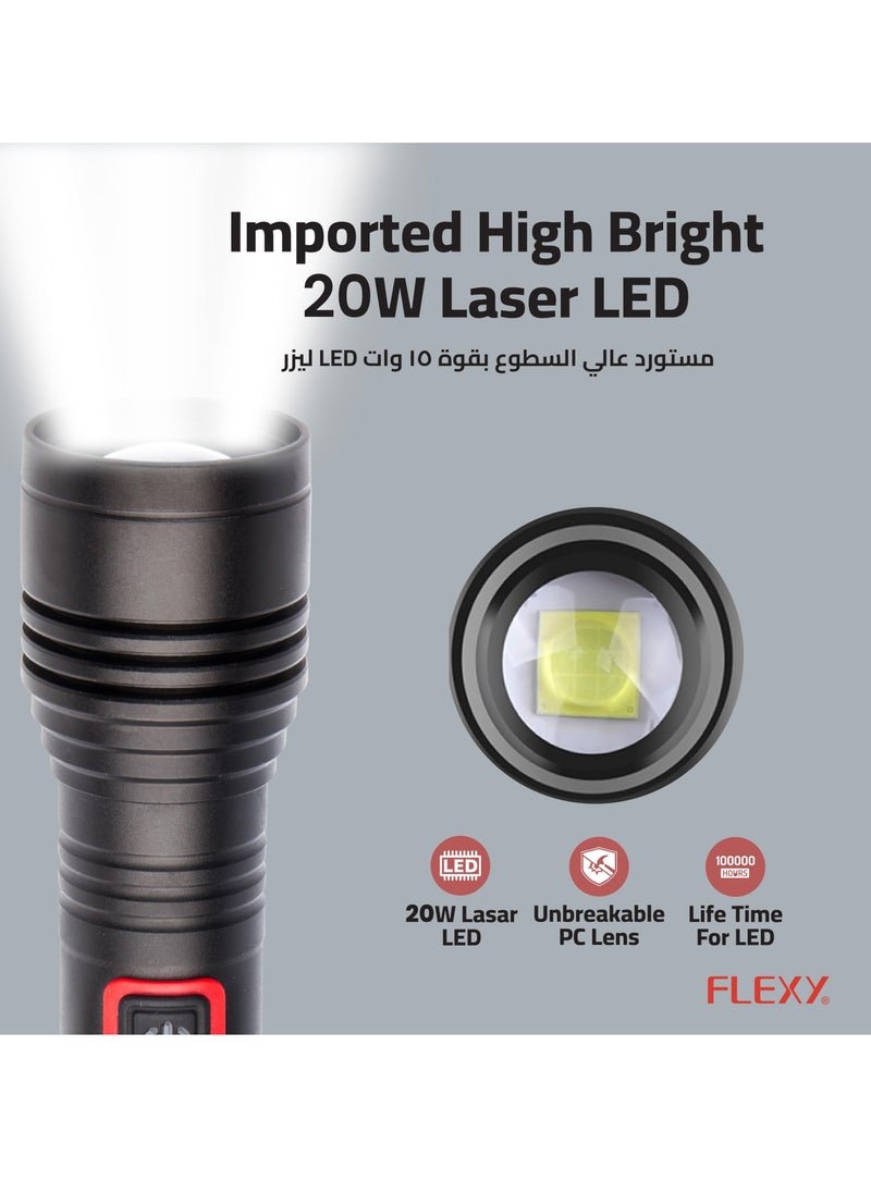 أضئ عالمك بنظام مصباح FLEXY القابل لإعادة الشحن، وهو مصباح قوي مصمم لأداء فائق. يتميز بمدى يصل إلى 600 متر وضوء ليزر LED بقوة 20 واط، يُنتج سطوعًا يتراوح بين 500 و600 لومن، ليخترق الظلام ببراعة. مصنوع من الألومنيوم عالي الجودة، يتميز بالمتانة وخفة الوزن، مما يجعله مثاليًا للمغامرات الشاقة. تضمن بطاريته بسعة 5000 مللي أمبير/ساعة طاقة تدوم طويلًا، ويمكن إعادة شحنها بسهولة عبر منفذ Type-C، بينما يوفر ضوء LED طويل الأمد إضاءة موثوقة ومتسقة. مع ضمان لمدة عامين، يُعد FLEXY الرفيق الأمثل لعشاق الأنشطة الخارجية والمحترفين على حد سواء. لا تنتظر – استمتع بسطوع ومتانة لا مثيل لهما.
